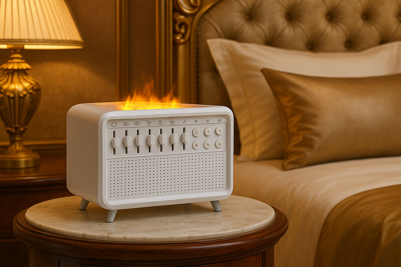 Experience unparalleled tranquility and wellness with our all-in-one sleep solution. Enjoy customizable soundscapes, effective humidity control, and a soothing ambiance for a perfect night’s sleep every time.